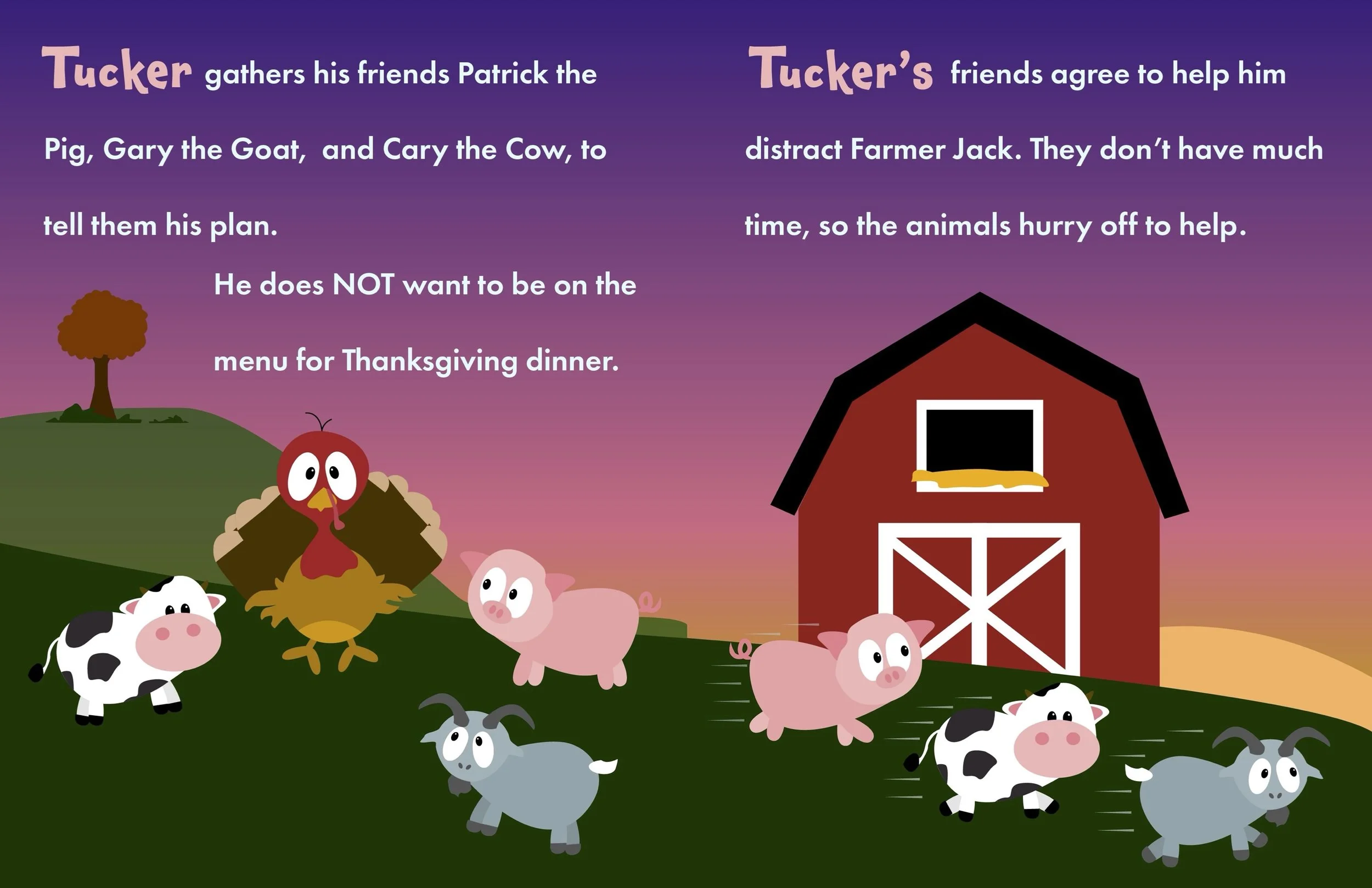 I tracked down an old home video of myself reading the original story and transcribed it word for word. From there, I rewrote the entire story, made a few changes (including the main character’s name from Frindle to Tucker and switching the turkey from female to male), and began editing. My first draft was over 2,000 words which was way too long for a children’s book, so I spent the next five weeks cutting it down to around 800 words.